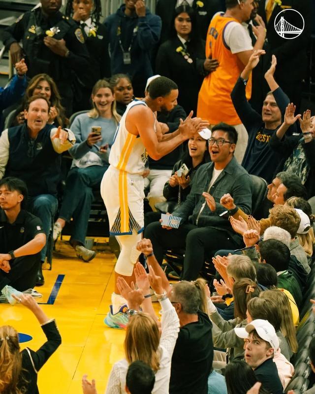 库里一击即中,超远三分绝平,全场沸腾,勇士球迷从绝望再到疯狂,这才是赛季第二场比赛,库里就展现这样的神迹。不止是这记绝平三分,勇士最后五分钟的得分,从107到120的13分,全部都是库里拿下的。
