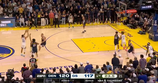 掘金上半场投出了18中10的三分,但下半场三分命中率骤减,第三节只有13中2。勇士也只是用了一节比赛就把比赛扳回来了,库里第三节手感回暖,双方再次展开对攻。