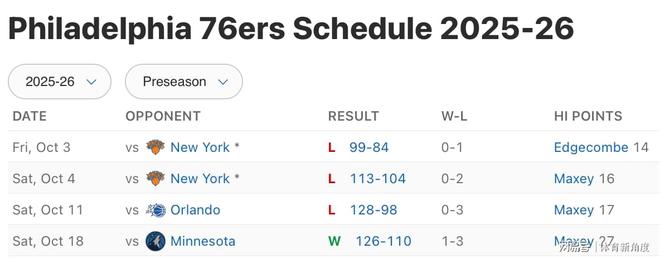在历经季前赛三连败的阴霾后,76人队终于在今日一役胜果,以126-110的比分力克森林狼,若再败,局势可就岌岌可危了……毕竟,季前赛四战皆墨,绝非理想的开篇。